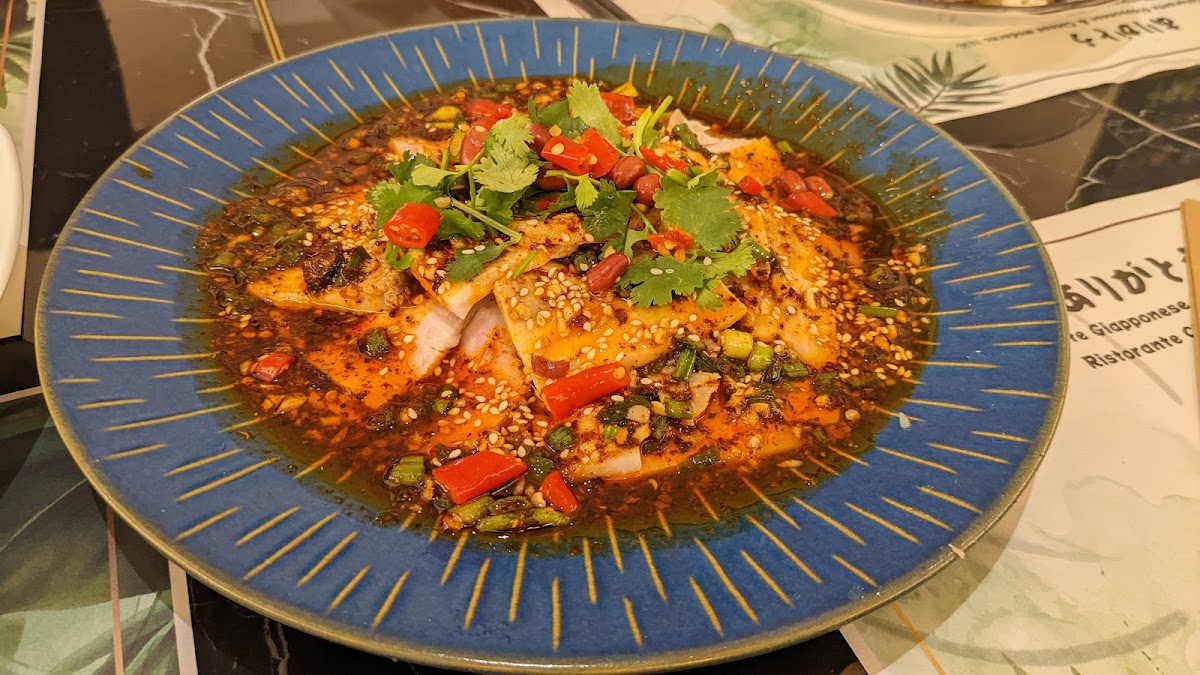 Great Szechuan food. Was craving Chinese food after a week in Europe. This place was absolutely solid. The hot pot fish was so incredibly tender (please watch the attached video if you need more proof). The fried rice with shrimp was awesome. Dishes are mostly on the saltier side however, which we personally don’t mind too much. Additionally, very friendly staff. The owner is very sweet and definitely very stylish! She personally welcomed every guest in and checked in with us frequently. Will definitely be back when we’re craving Chinese food again in Rome.